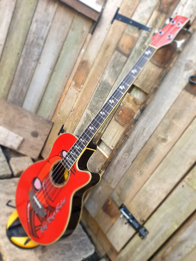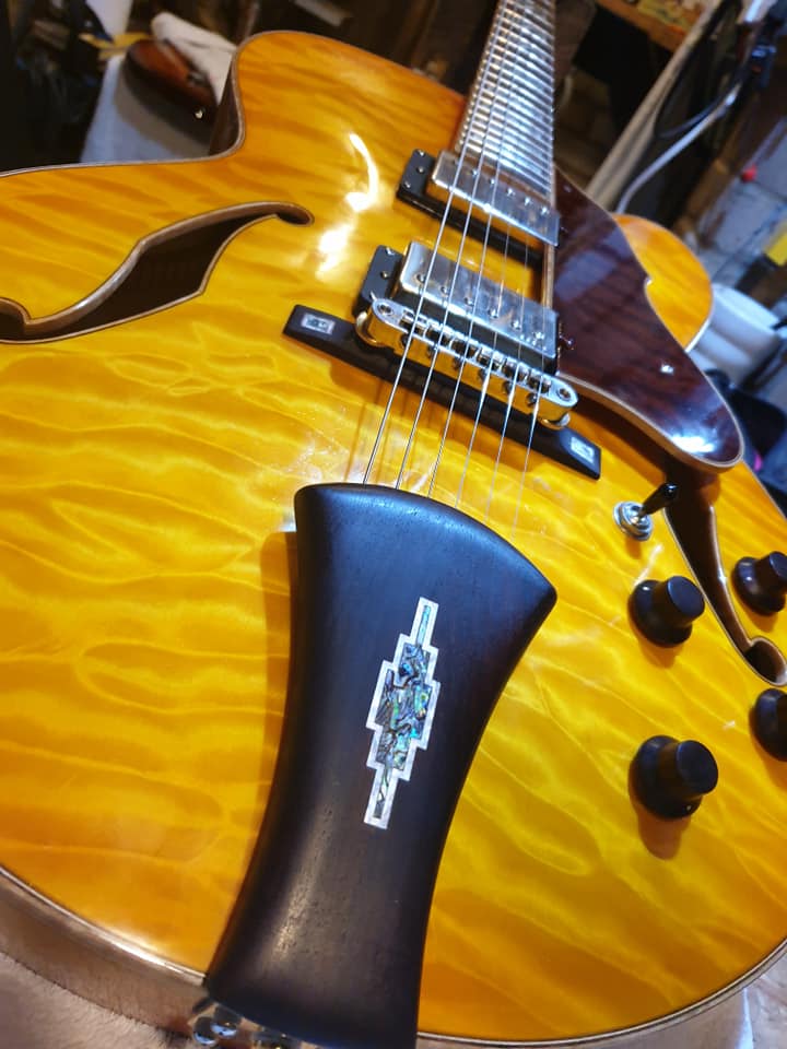 So now I work with my lifelong friend and cousin Karl Bailey, whom I laughingly call ‘the artwork department’ and we build, repair, and craft exceptional, handmade guitars together.